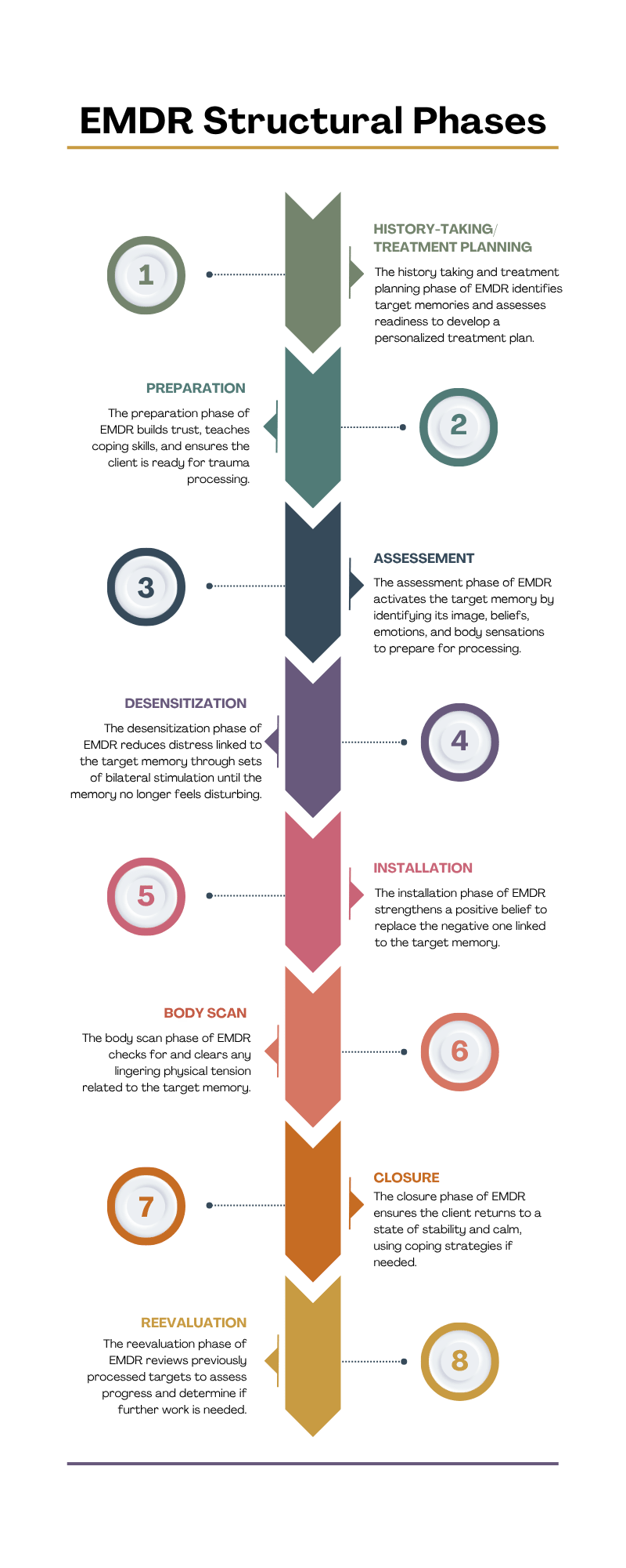 EMDR is a structured therapy that enables people to heal from the emotional distress associated with disturbing life experiences. Rather than relying solely on talk therapy, EMDR uses bilateral stimulation, typically in the form of guided eye movements, to help the brain reprocess traumatic memories and change the way those memories are stored.